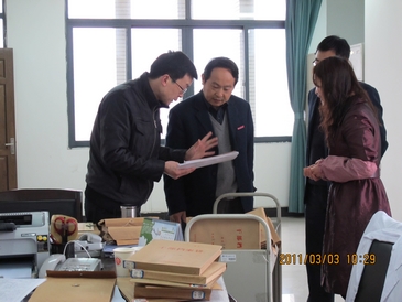 | 3月3日上午,学校党委书记邓卓明在党政办副主任陈进东的陪同下来到档案馆调研指导工作。 邓书记首先视察了档案库房和办公区域,并仔细查看了相关管护设施和设备。在听取了档案馆李川馆长对目前档案管理工作有关情况汇报后,邓书记指出,档案工作很重要,档案是学校宝贵的财富,档案馆作为专门的管理机构,有责任和义务管好、用好档案,随着信息化建设的推进,要不断提高管理和服务水平,推动学校档案工作不断迈上新的台阶;对库房管理必备设施和设备应尽快添置,创造良好的管护条件;档案资源的建设要紧紧发动和依靠全校各二级单位,加强业务指导,严把入口关,确保档案质量;加强档案法制宣传,建立相应的奖惩制度;要充分发挥档案在学校发展中的利用价值,严格相关查询利用程序。 调研结束后,邓书记还亲切看望了档案馆全体职工,勉励大家要在平凡甚至默默无闻的的工作中为学校的发展添砖加瓦。   |