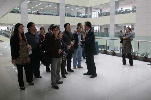 在党政办和档案馆负责人的陪同下,客人参观了综合办公楼、校友会堂、校史馆、图书馆、档案馆等场馆,对我校大学城校区建设的成就和浓厚的人文气息给予高度赞扬。参观结束后,宾主双方在档案馆就档案库房的建设与管理、档案信息化建设、校史研究等共同感兴趣的话题进行了交流。