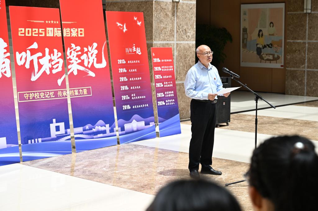 杨如安在讲话中指出,档案是历史的见证与时代的记录,高校档案记载着学校的发展历程和师生的奋斗足迹。他强调,学校高度重视档案工作,档案馆通过推进档案数字化提升服务质效,强化档案、校史、场馆育人功能提升育人实效,切实履行“为党管档,为校守史,为民服务”职责职能,有力的支撑和保障了学校各项事业高质量发展。他希望,全校师生积极参与国际档案日活动,深入了解档案工作的意义和价值;进一步加强档案开发利用,为学校事业发展提供更优质的档案服务;进一步加强档案工作队伍建设,为档案事业的持续发展奠定坚实基础。